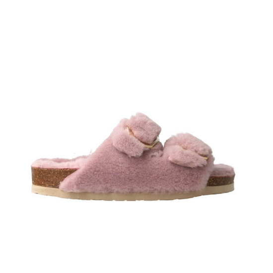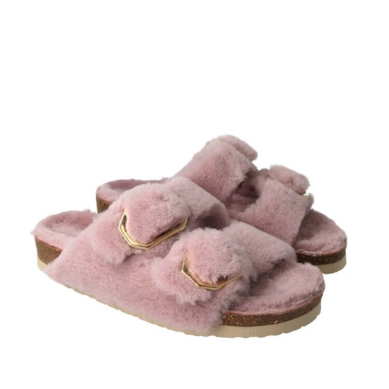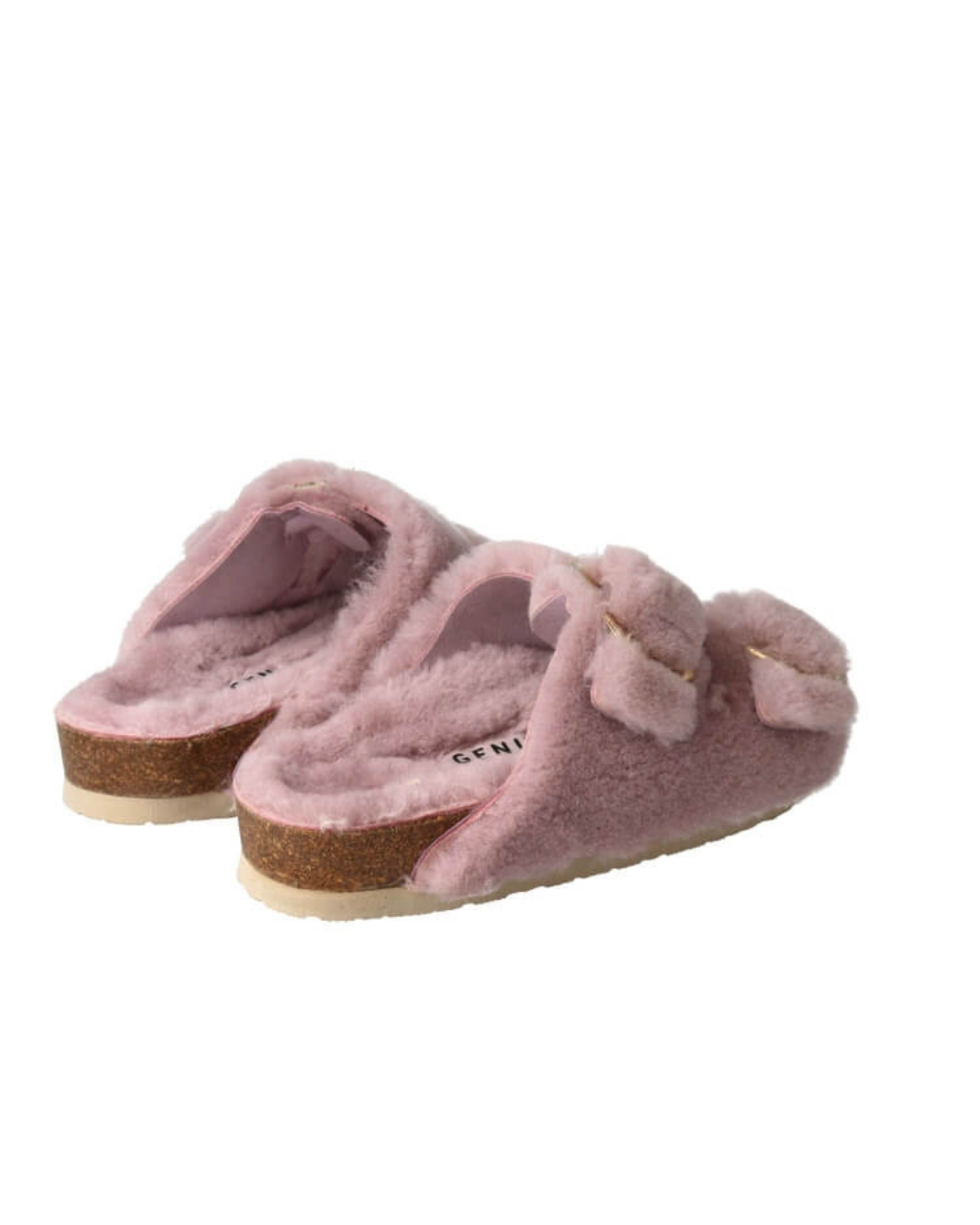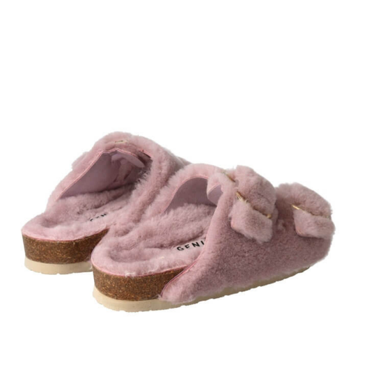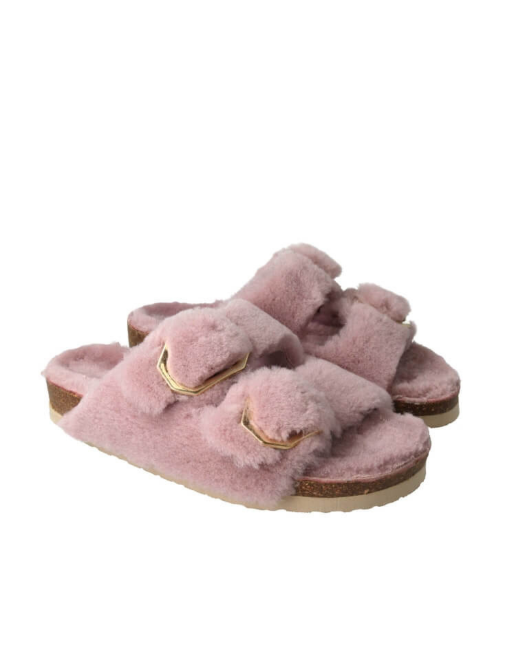 Anatomical Genuins sole made of natural fur in pink. Adjustable with two buckles.