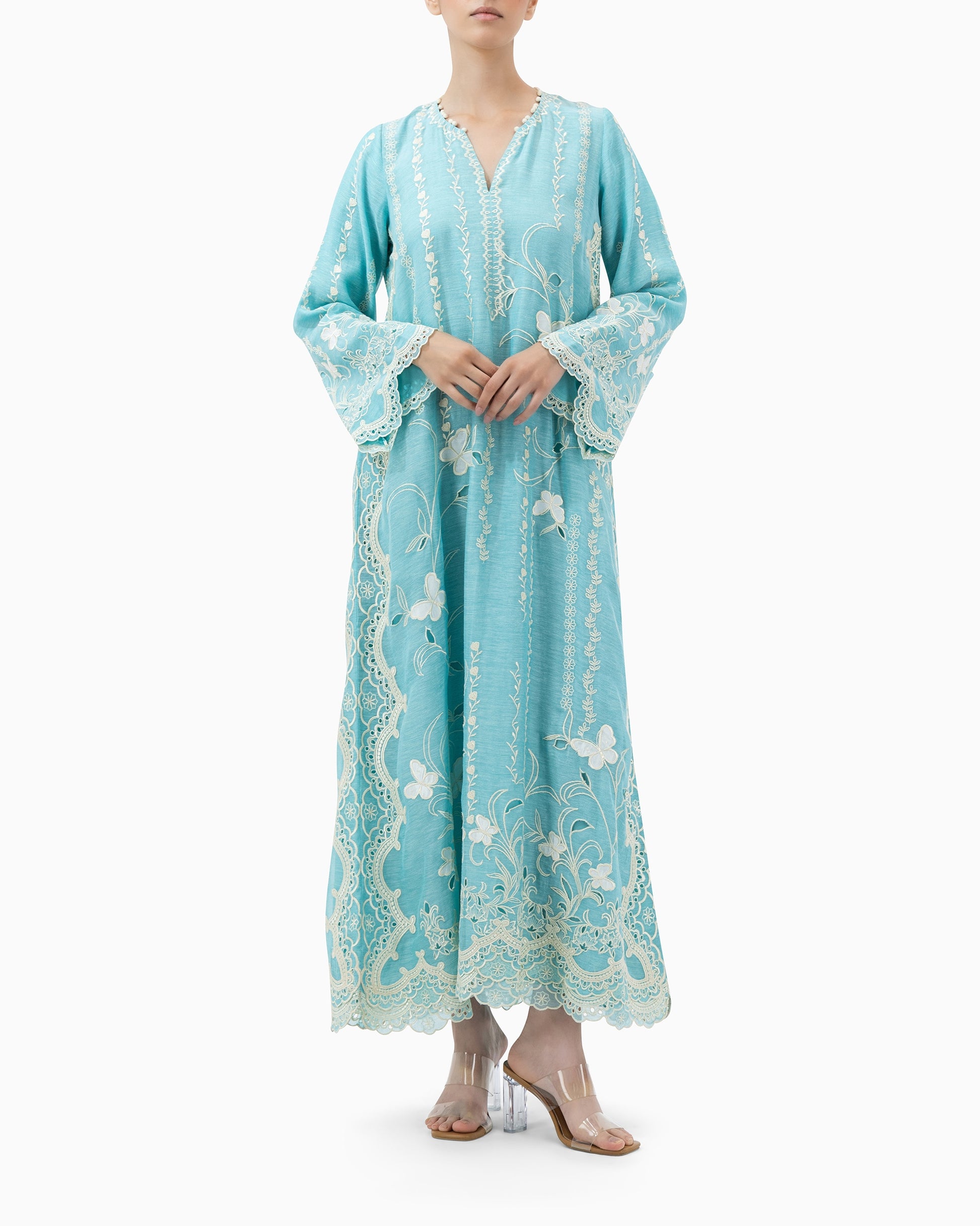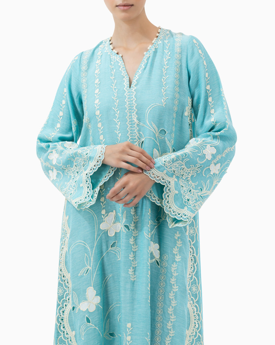 Style: Hand Embroidery | Flarred Sleeves | Scalloped Hemline