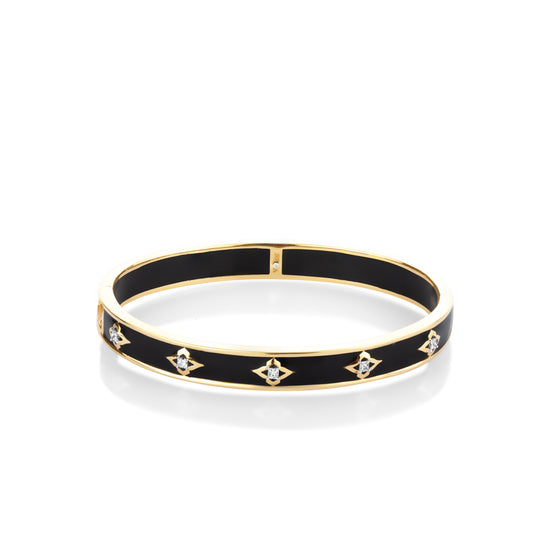 Inspired by the urban jungle of futurism and contemporary architecture, elegance and eroticism of the city of New York, this adventurous bangle is for the daredevil traveller who is undaunted in spirit and finds treasures along the way. It is masterfully crafted in ceramic with svelte lines of 18 kt gold and studded with natural diamonds.