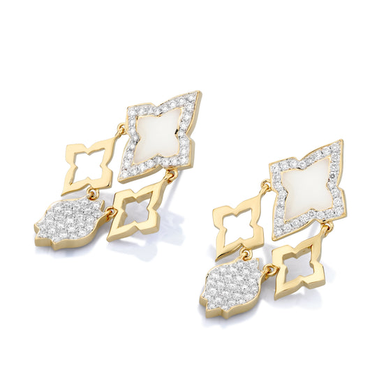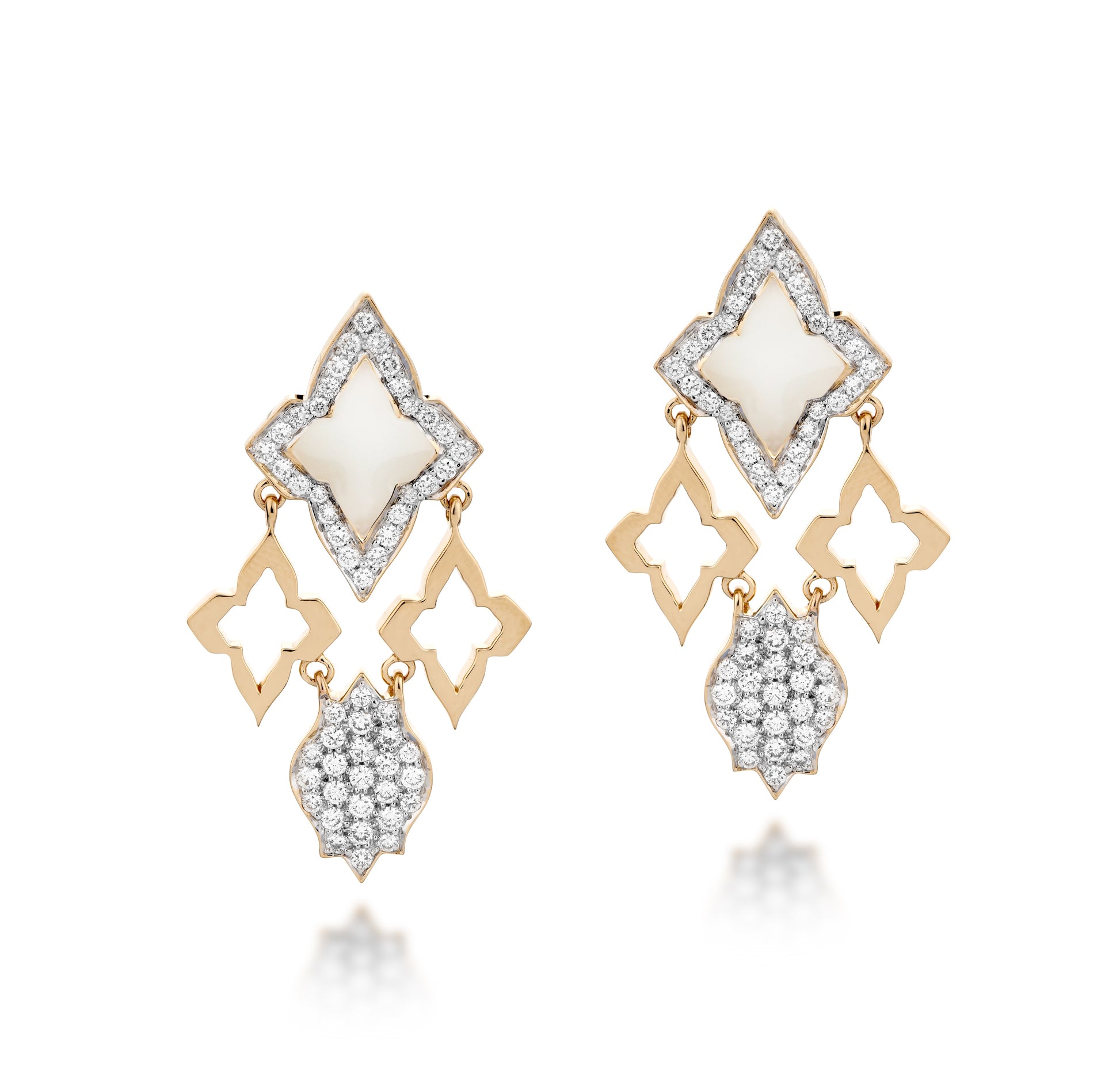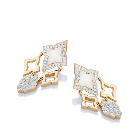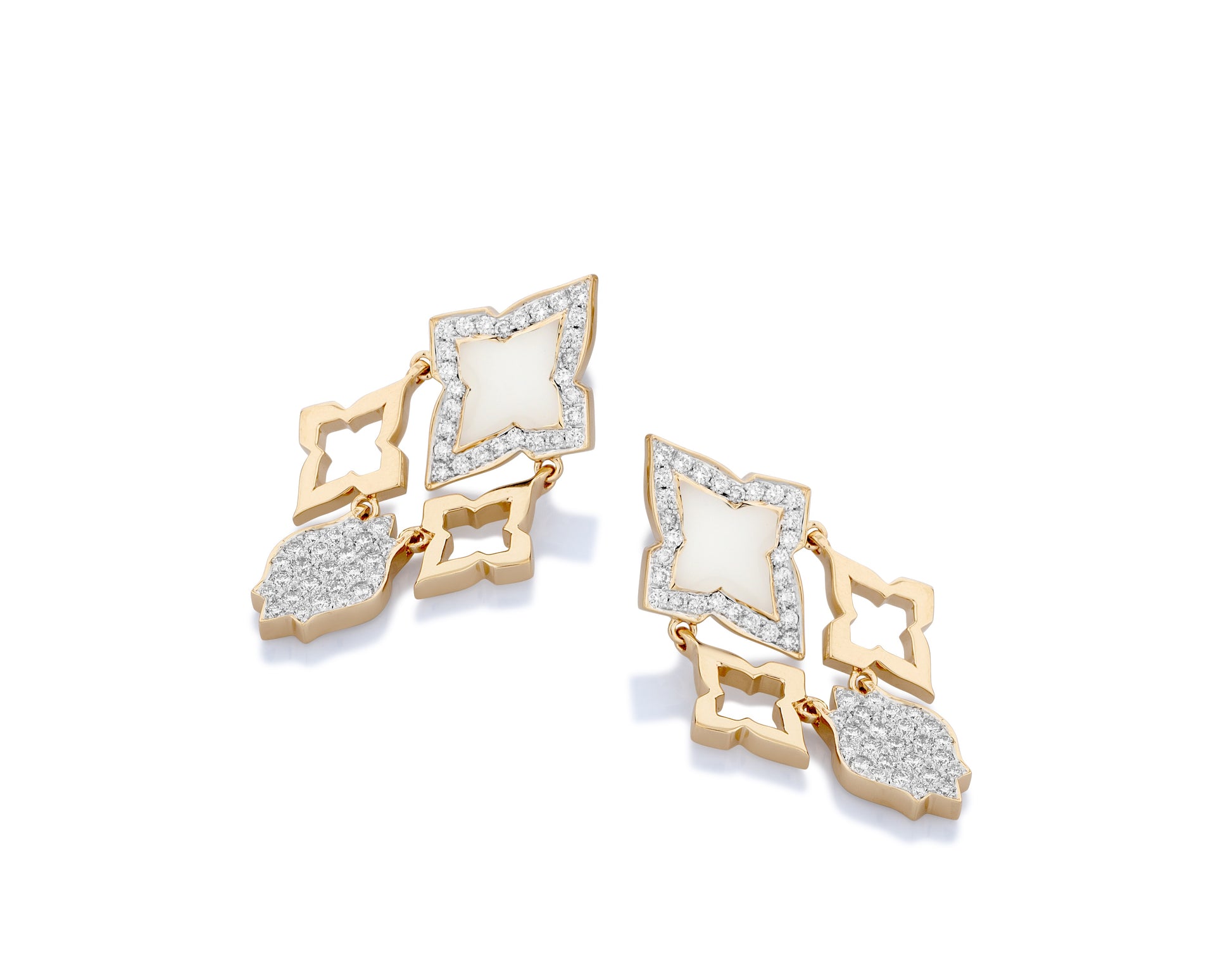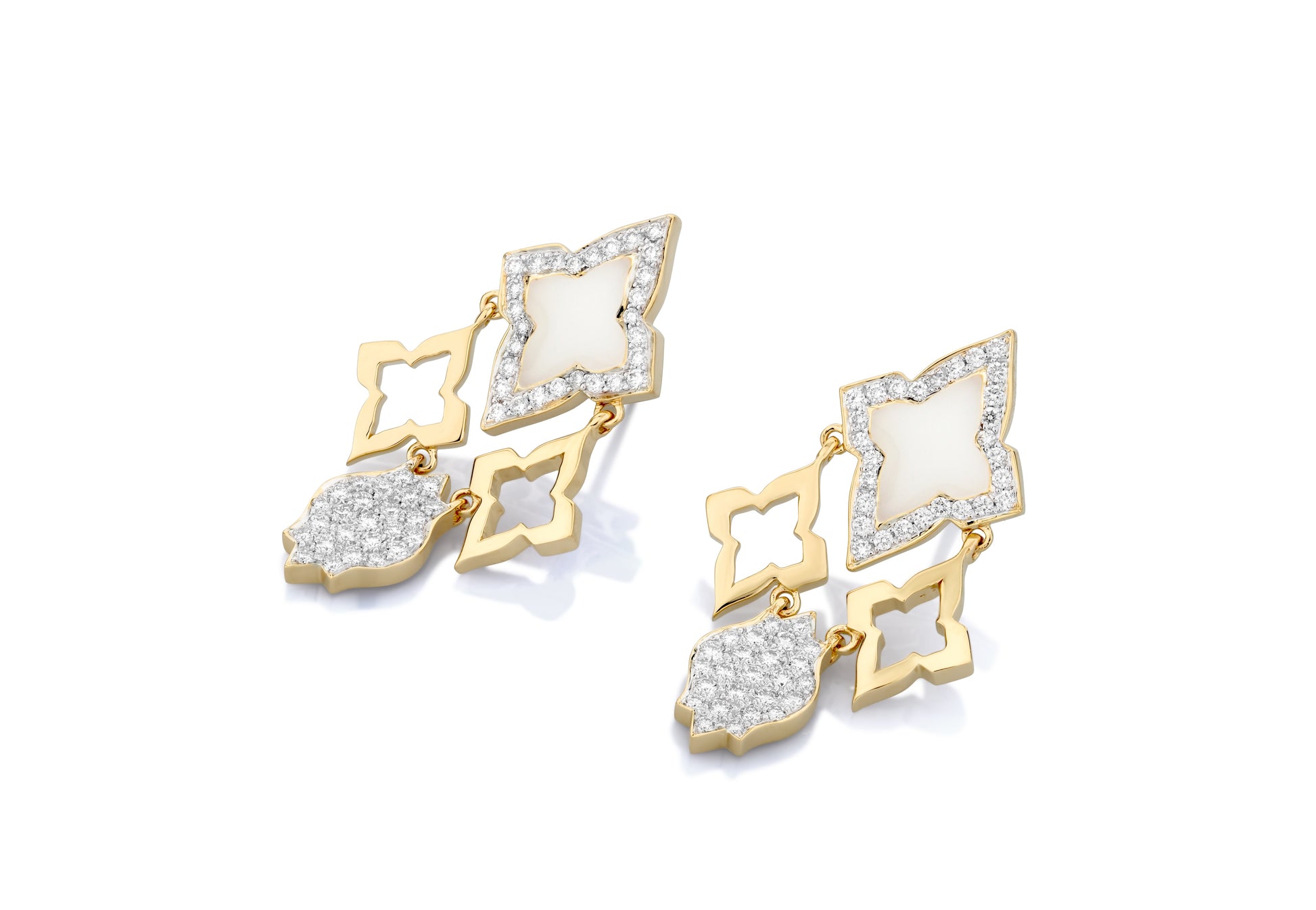 Designed in 18kt gold, brilliant diamonds and white ceramic, these classic Aayat earrings are for the woman who is all heart.